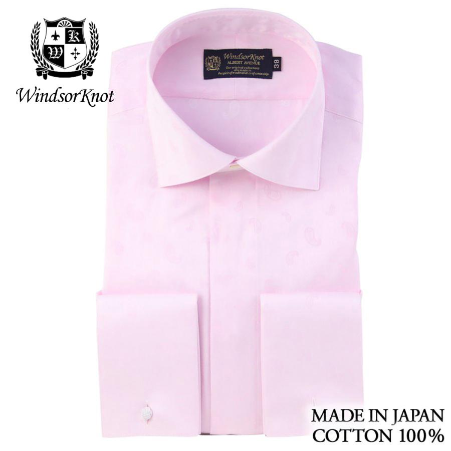 即納最大半額 ドレスシャツ メンズ 長袖 ペイズリーサテン フライフロント ダブルカフス ワイドカラーシャツ ピンク無地 綿100 100双 ウィンザーノット Windsorknot 肌触りがいい Www Muslimaidusa Org